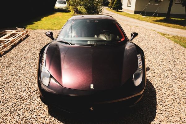 Naszemu Klientowi znudził się już szary kolor Ferrari, z tego względu postanowił coś w niej zmienić. Zlecił nam oklejenie samochodu na jeden z kolorów, znajdujących się w palecie KPMF Midnight Crimson Bloom oraz dach w strukturze Carbon.